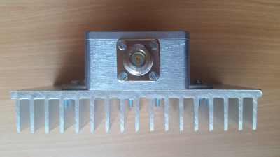 The heart of this dummy load is the RF designed 50 ohm resistor rated with 250W power dissipation from DC to 2GHz, model CHF9838CNF500L from Bourns, so it's not a chinese cheap one. The N connector also is high quality rated for 11GHz from Amphenol.